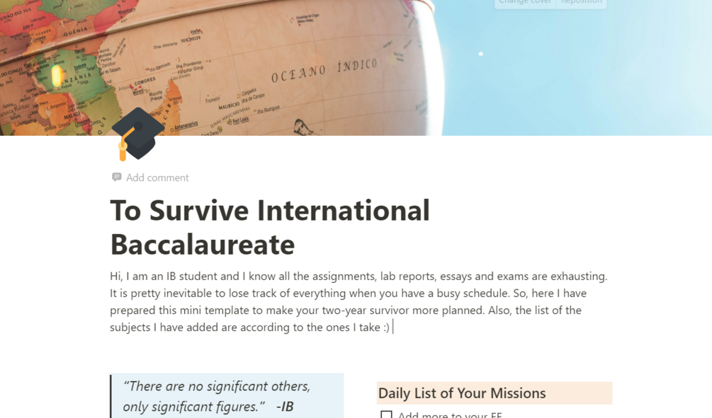 I am an IB student and throughout those 2 years, I found it pretty hard to keep up with all the assignments, assessments. That is why I have decided to create a template so that the ones decided to study IB after can plan their work better.